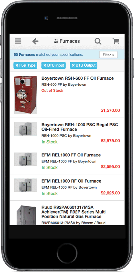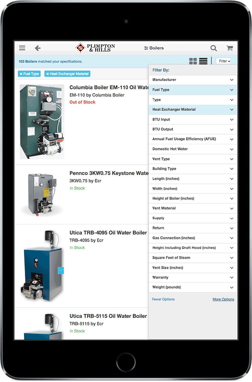 Search products by detailed specifications for boilers, water heaters, furnaces and more...