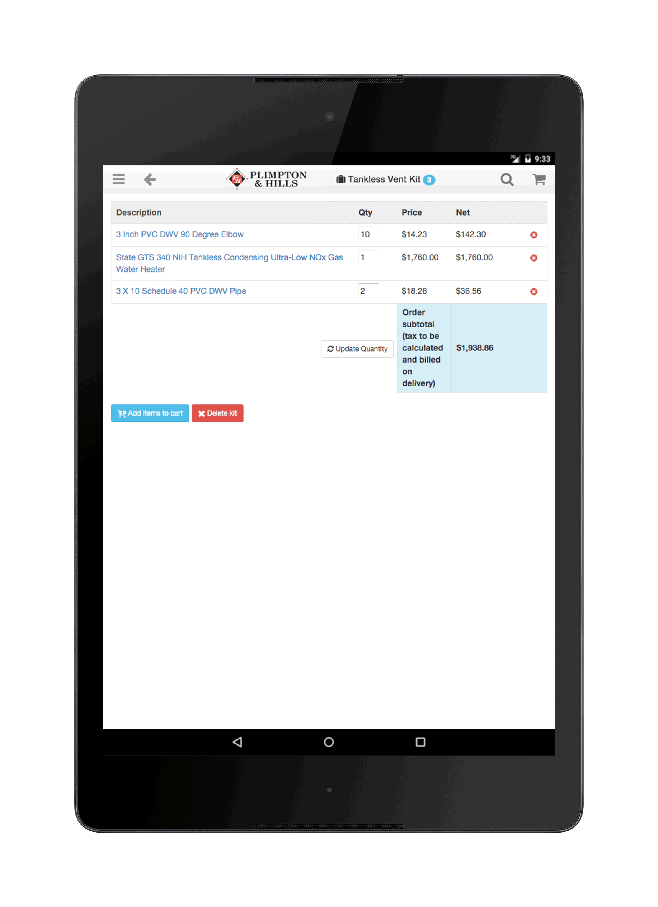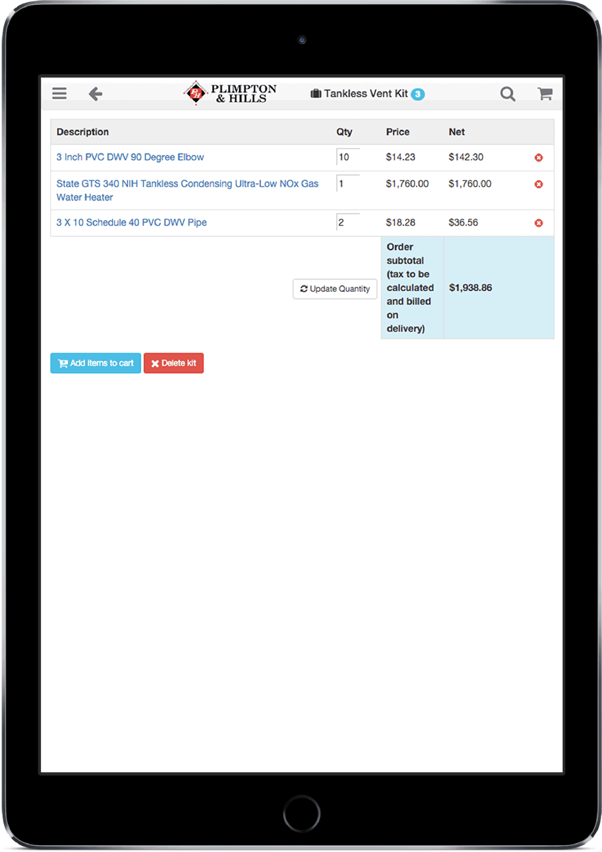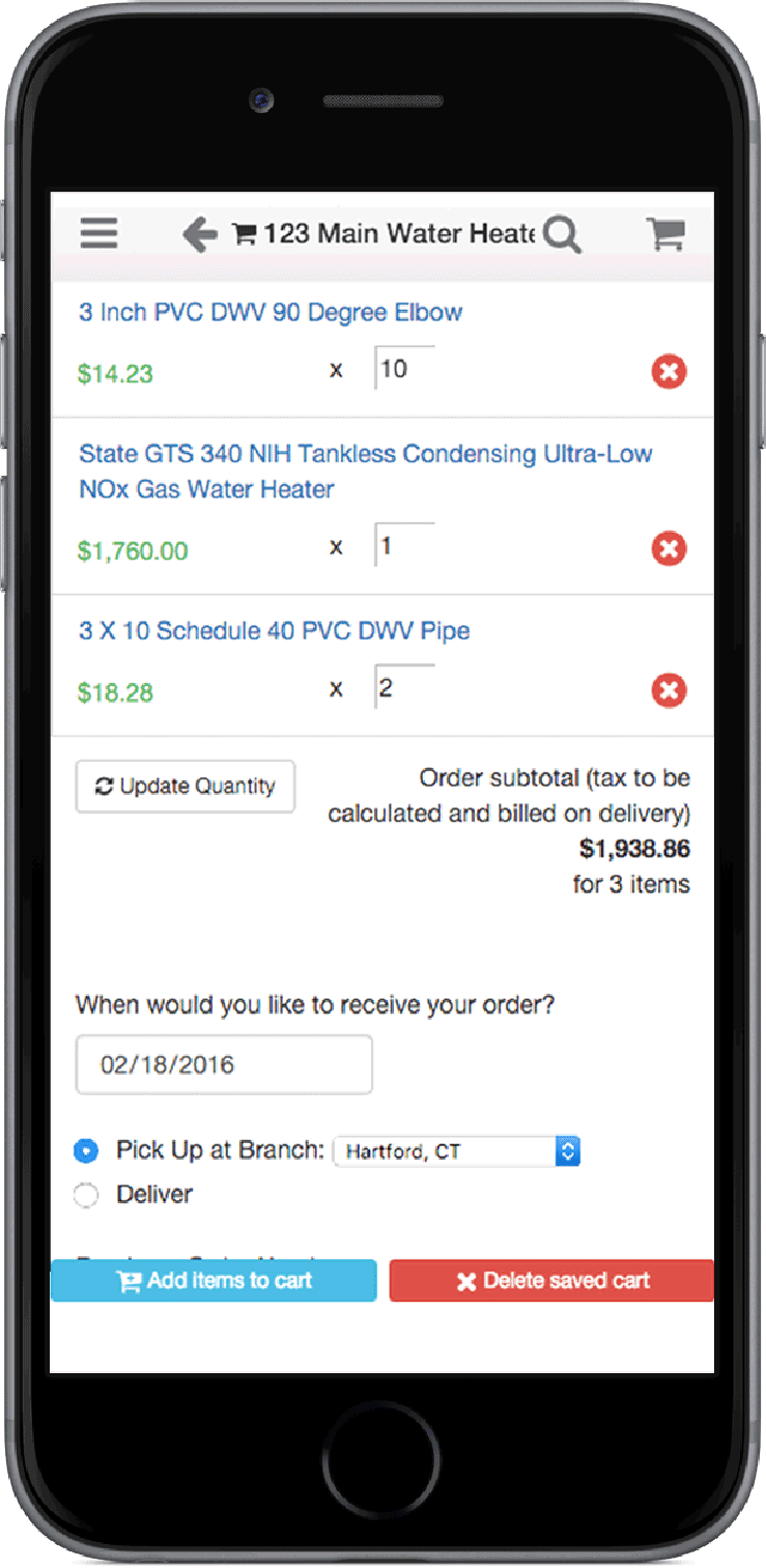 Create product kits to easily reorder common parts and components. Save a cart to order later...