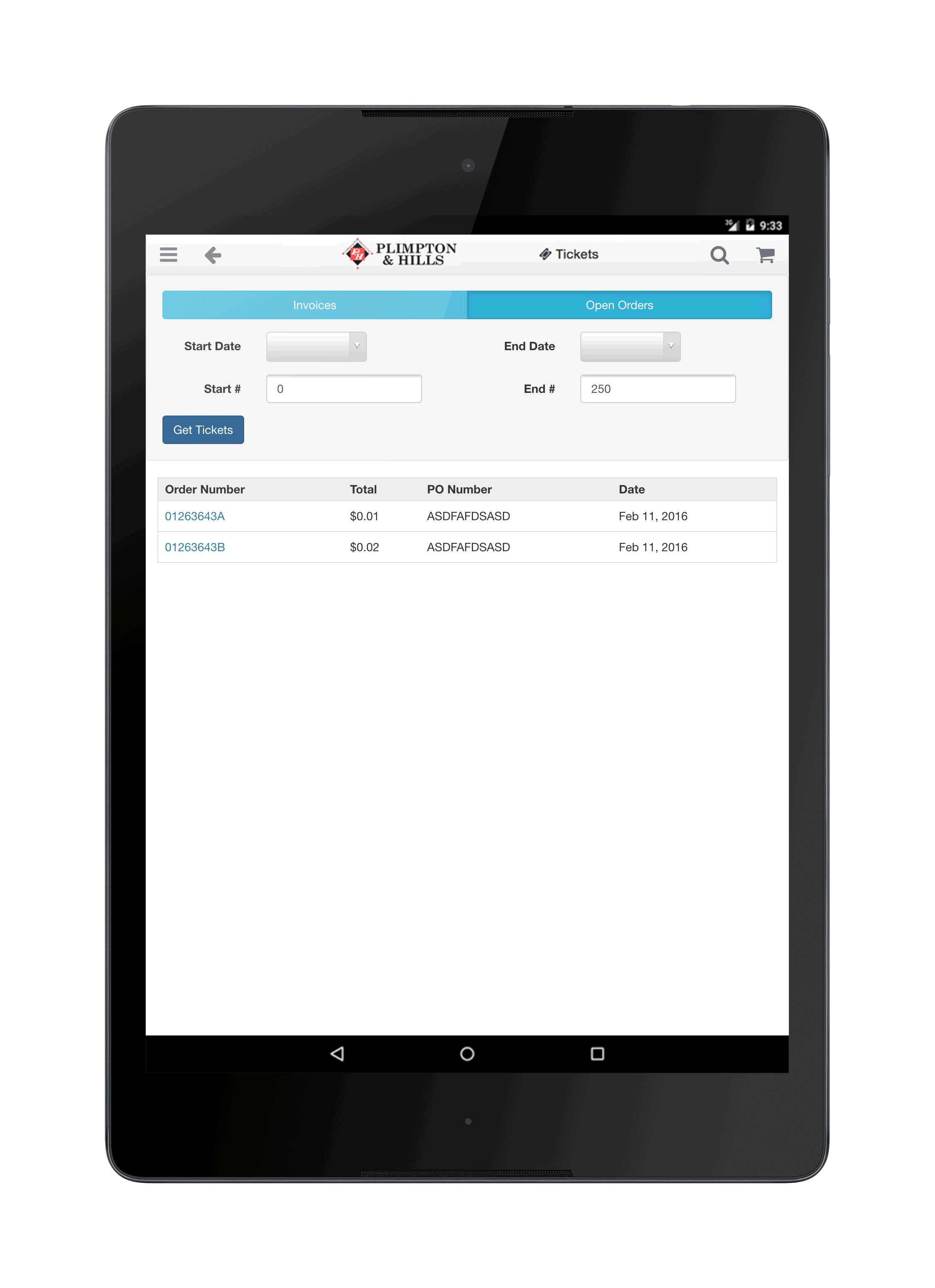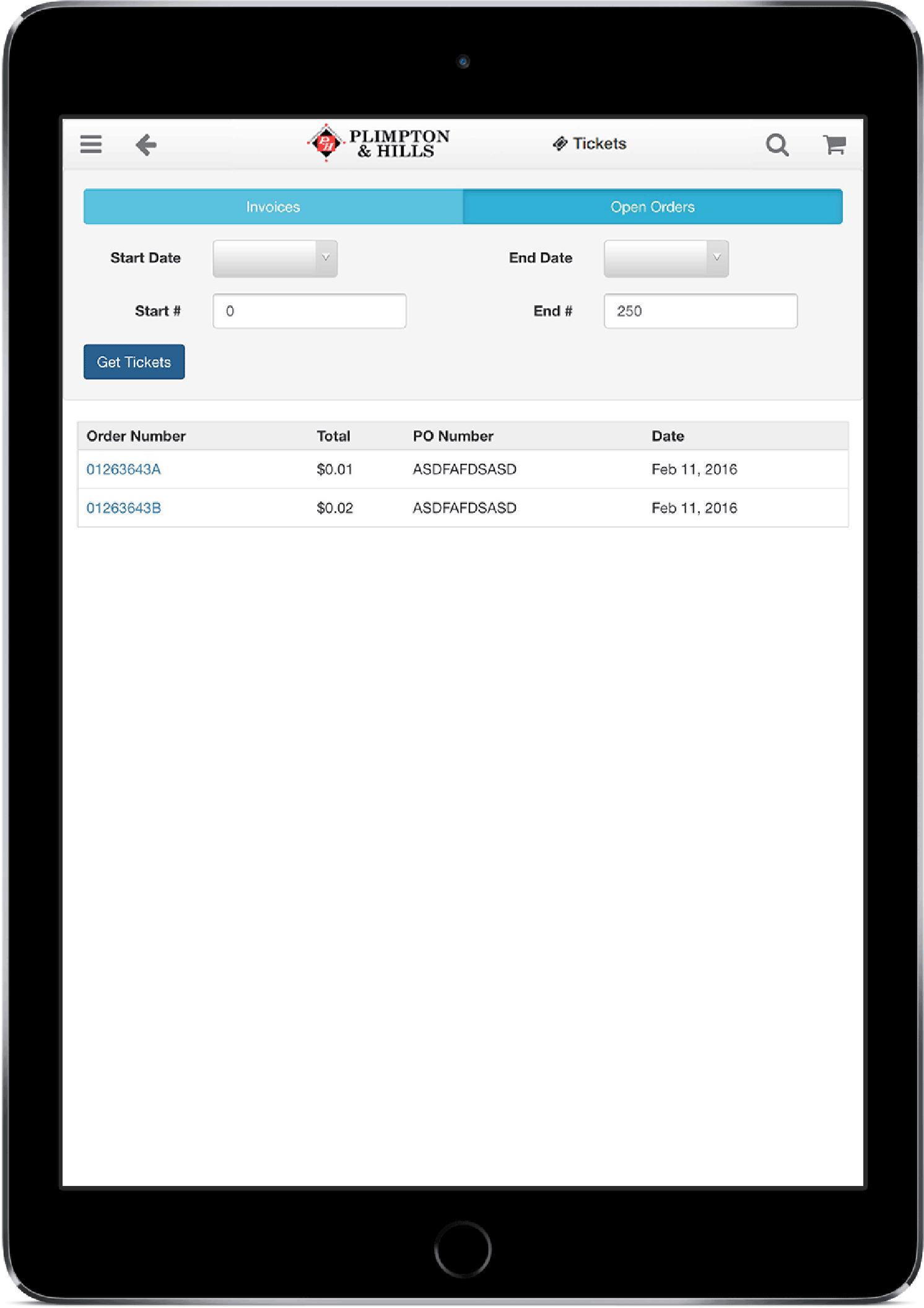 View past invoices and keep track of open tickets, deliveries and pickups...