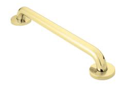 Moen®, R8724PB, Grab Bar, Home Care® Collection, 1-1/4 in Diameter, 24 in Length, 3 in Width, 3.14 in Height, 500 lb Load, Concealed Mounting, 304 Stainless Steel, Polished Brass, Import
