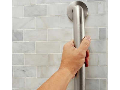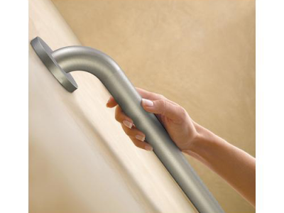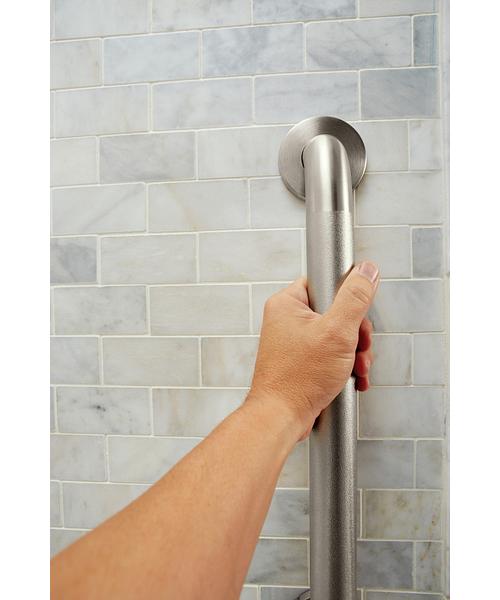 Moen®, R8924P, Grab Bar, Home Care® Collection, 1-1/2 in Diameter, 24 in Length, 3 in Width, 3.175 in Height, 500 lb Load, Concealed Mounting, 304 Stainless Steel, Peened, Import