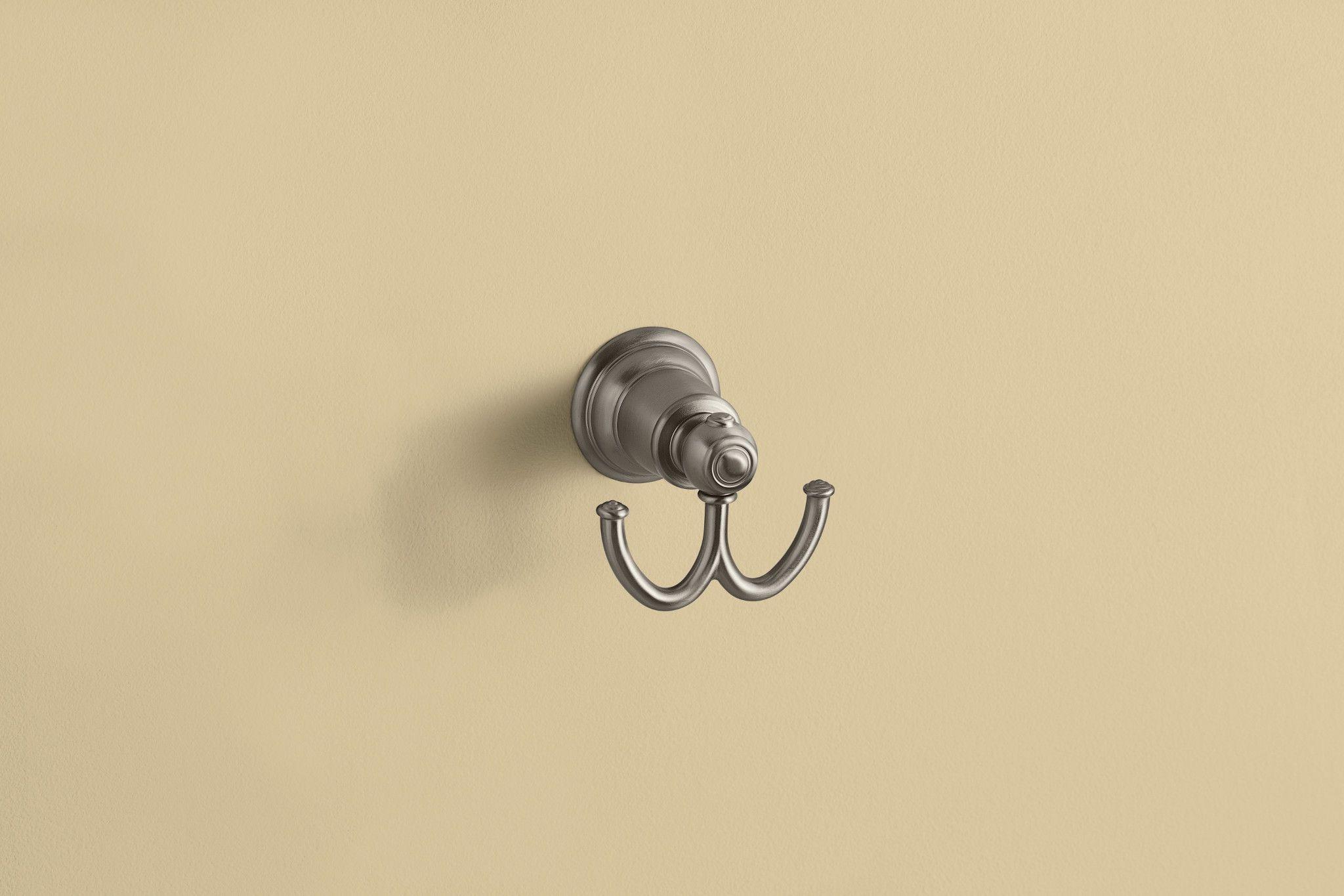 Moen® Robe Hook, Kingsley®, 2 Hooks, 3.31 in Overall Width, 3.01 in Overall Depth, 3.11 in Overall Height, Brushed Nickel, Import