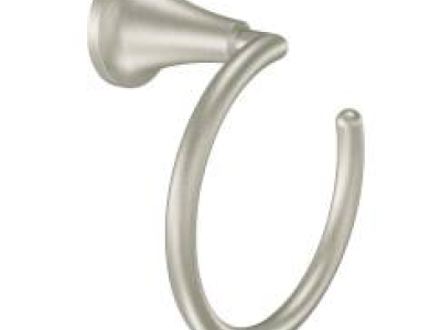 Moen® Hand Towel Ring, Icon™, 5-3/4 in Overall Length, 3-1/4 in Overall Depth, 6.63 in Overall Height, 2-1/4 in Base, Zinc Alloy Die Cast, Brushed Nickel, Import