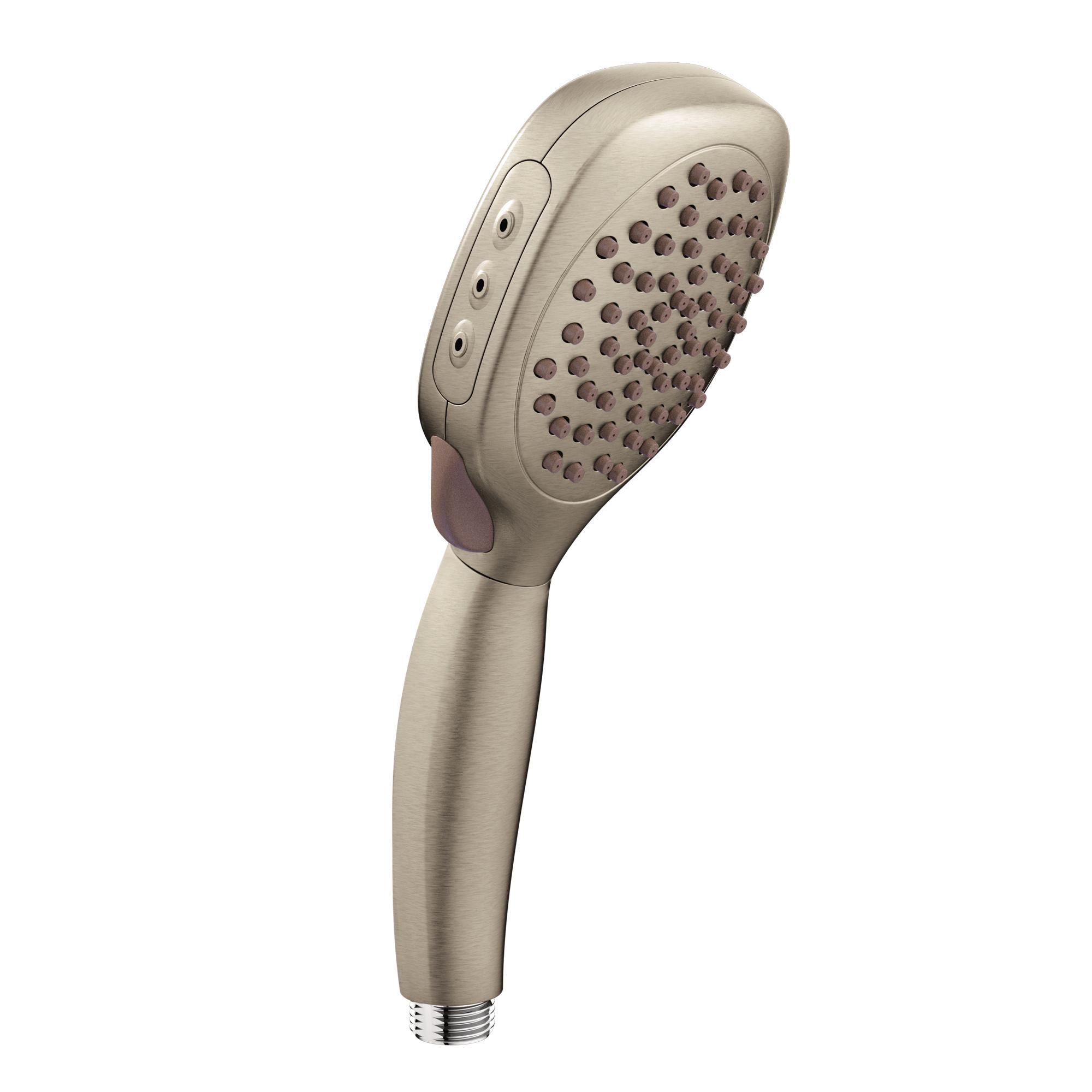 Moen® Handheld Shower Head, 2 gpm, Round, Number of Sprays: 4, Spray Pattern: Combination/Full Body/Invigorating/Targeted Massage, 3-3/4 in Head, 2.5 in Overall Width, 8 in Overall Height, Metal, Brushed Nickel, Domestic