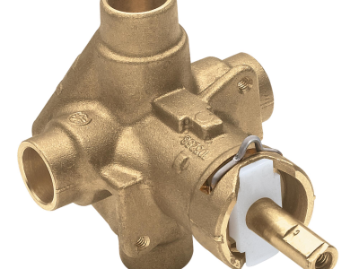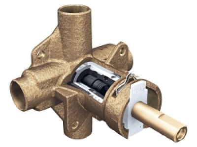 The MOEN Rough-In Posi-Temp Pressure-Balancing Cycling Valve features brass construction and is easy to install. With the M-PACT common valve system, you can easily upgrade the style of your faucet without replacing any of the plumbing. The adjustable temperature limit stop helps control the maximum hot water flow for added convenience.