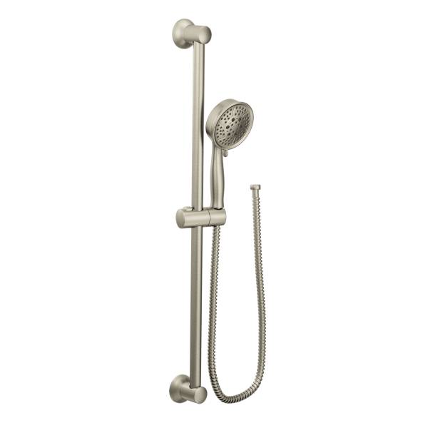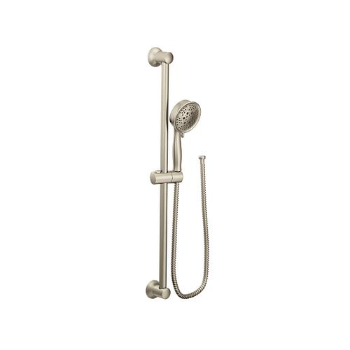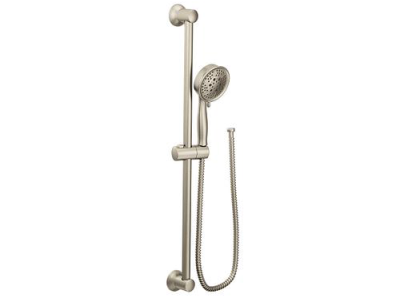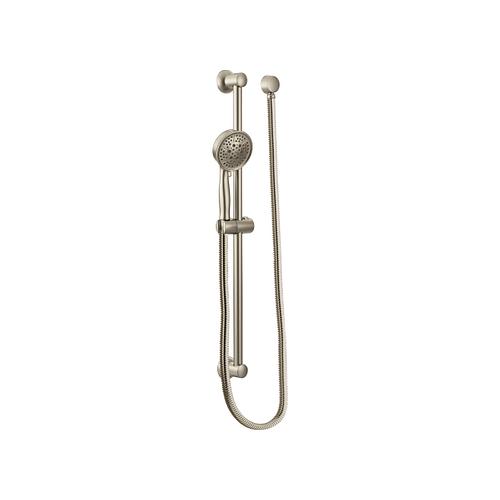 Moen®, 3667EPBN, Shower, 4-3/8 in Shower Head Diameter, 4-Function Shower Head Patterns, 2 gpm Flow Rate, 69 in Hose Length, Combination/Full Body/Invigorating/Targeted Massage Spray, 80 psi Pressure, Metal, Brushed Nickel, 5.88 in W x 33 in D x 3.25 in H Dimensions, With Slide Bar: Yes, Domestic