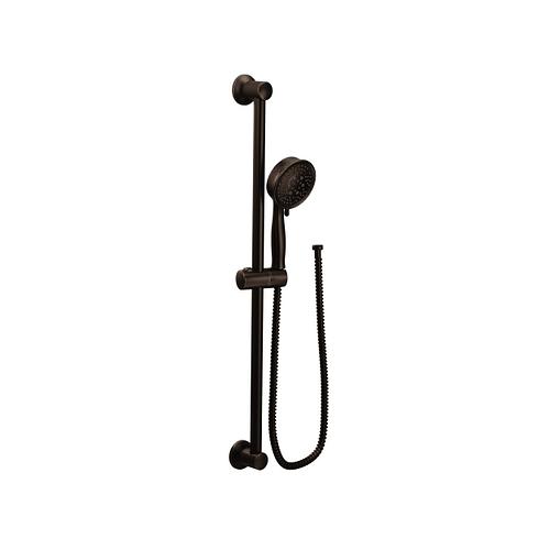 Moen®, 3667EPORB, Shower, 4-3/8 in Shower Head Diameter, 4-Function Shower Head Patterns, 2 gpm Flow Rate, 69 in Hose Length, Combination/Full Body/Invigorating/Targeted Massage Spray, 80 psi Pressure, Metal, Oil Rubbed Bronze, 5.88 in W x 33 in D x 3.25 in H Dimensions, With Slide Bar: Yes, Domestic
