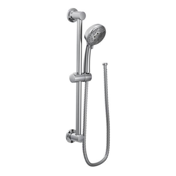 Efficient and stylish, the MOEN 4-Spray Eco Handheld Handshower is crafted for personalized showers in a water-efficient design. A flexible 69 in. hose makes it easy to bathe children and pets, and the 30 in. slide bar lets you adjust the showerhead to your height preference, ideal for everyone in the family. This environmentally friendly design is also WaterSense certified to reduce water waste, making it an efficient and responsible choice for your home.