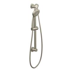 Moen® Hand Shower, 4 in Shower Head Dia, Shower Head Patterns: 1-Function, 2.5 gpm, 59 in Hose Length, Full Body Spray, 80 psi, Metal Hose, Metal, Brushed Nickel, Yes With Slide Bar Yes/No, Domestic