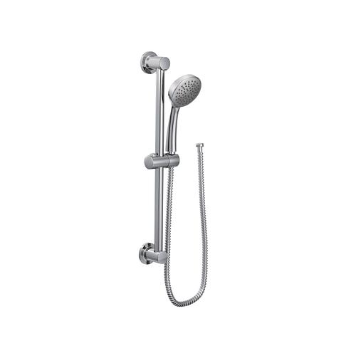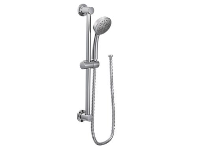 Moen®, 3868EP, Shower, 4 in Shower Head Diameter, 1-Function Shower Head Patterns, 2 gpm Flow Rate, 59 in Hose Length, Full Body Spray, 80 psi Pressure, Metal Hose, Chrome, 4 in W x 8-3/4 in D x 8-3/4 in H Dimensions, With Slide Bar: Yes, Domestic