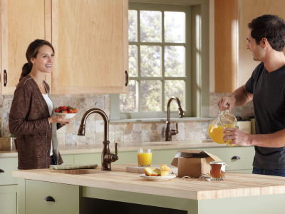 Add an aesthetic appeal to your kitchen sink with the Moen Brantford Faucet. This faucet has a sturdy and durable structure made from a premium-quality material. It is available in multiple finishes that suits perfectly for modern kitchen decors. The fauc