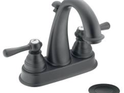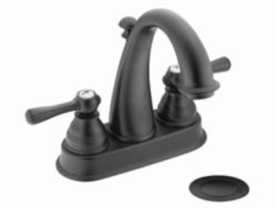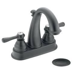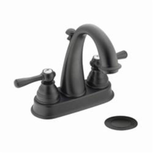 Moen® Centerset Bathroom Faucet, Kingsley® Collection, 1.2 to 1.5 gpm Flow Rate, 4 in Center Distance, Fixed Spout, 4-3/8 in Spout Reach, 4-1/2 in Spout Height, Lever Handle, 2 Handles, Metal Pop-Up Drain, 3 Faucet Holes, 1/2 in Connection, IPS Connection, Spray Pattern: Aerated, 3/4 in Maximum Deck Thickness, Deck Mounting, 1224 Ceramic Disc Cartridge, 8.8 in W x 4.38 in D x 6.75 in H Dimensions, Wrought Iron, Domestic