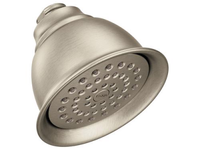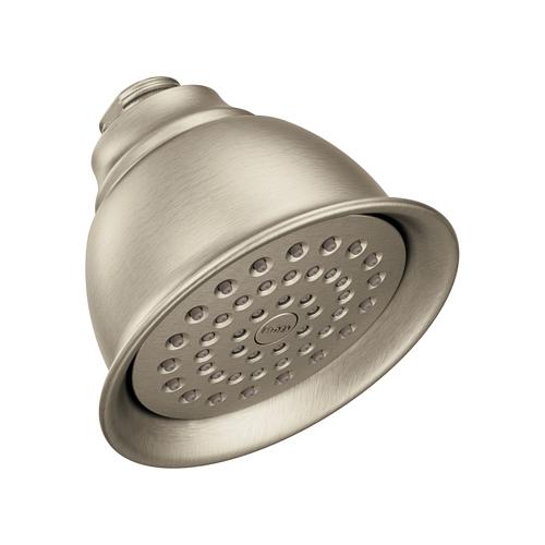Moen®, 6302BN, Shower Head, Standard, Moenflo®XL Collection, 2.5 gpm Minimum, 1/2 in IPS Connection, Round Shape, 1 Sprays, Spray Pattern: Full Body, Wall Mounting, 4-3/8 x 3-7/16 in Head, 4.38 in Overall Width, 4.38 in Overall Height, Brass, Brushed Nickel, Domestic