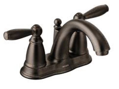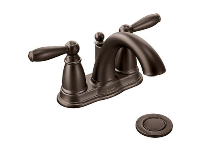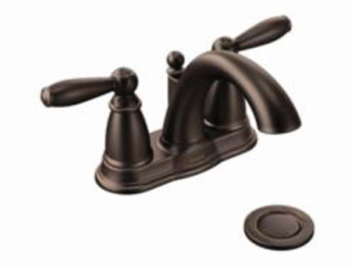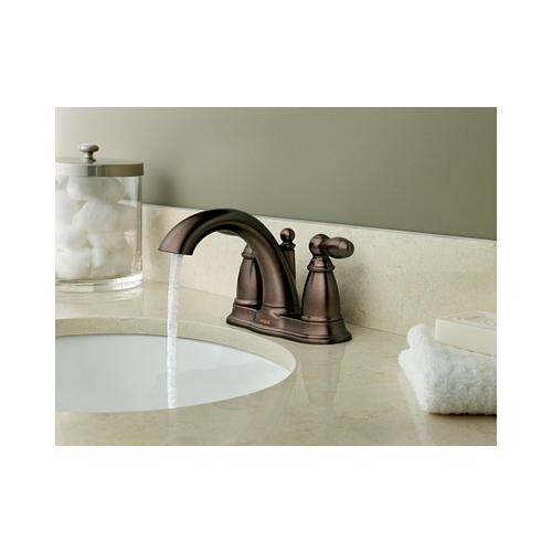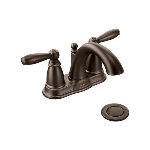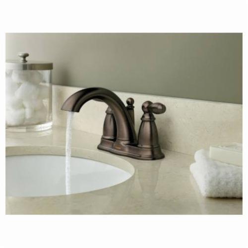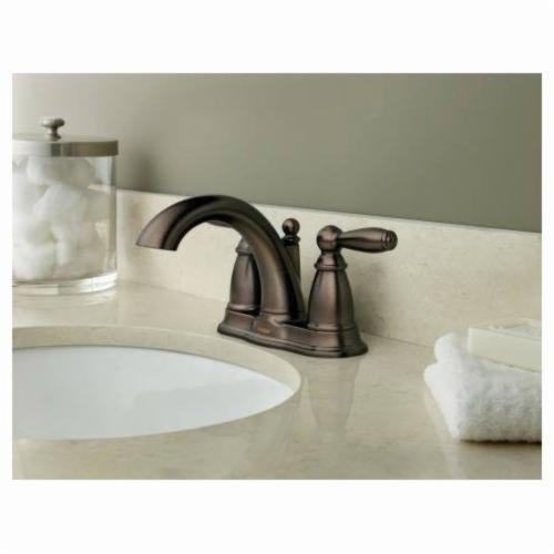 Moen®, 6610ORB, Bathroom Faucet, Brantford™ Collection, 1.5 gpm Flow Rate, 4 in Center Distance, Fixed Spout, 5-1/4 in Spout Reach, 3-1/4 in Spout Height, Lever Handle, 2 Handles, Metal Pop-Up Drain, 3 Faucet Holes, 3/8 in Connection, IPS Connection, Spray Pattern: Aerated, 1-3/16 in Maximum Deck Thickness, Deck Mounting, 1224 Ceramic Disc Cartridge, 8.13 in W x 5.25 in D x 9.44 in H Dimensions, Oil Rubbed Bronze, Domestic