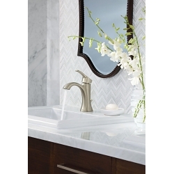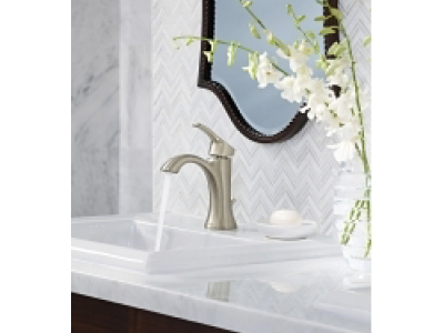 Featuring crisp edges and an elegant design, the MOEN Voss Single Hole Single Handle High-Arc Bathroom Faucet boasts an ageless, yet fashion-forward, presence. Its unique silhouette brings a confident transitional style to your bathroom to accent your overall space. Offering a beautiful brushed nickel finish that offers long-lasting shine, this bathroom faucet was built to last and will serve as the perfect complement to your decor.