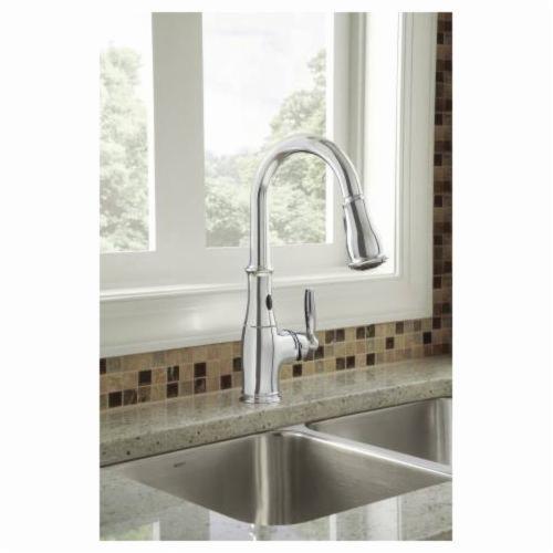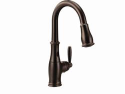 Moen® Kitchen Faucet, Series: 7185EC, Brantford™ Collection, 1.5 gpm Flow Rate, High Arc Pull-Down Spout, 7.87 in Spout Reach, 15-1/2 in Spout Height, 68 in Hose, Lever Handle, 1 Handles, 1/3 Faucet Holes, 1-1/2 in Faucet Hole, 3/8 in Connection, Compression Connection, Spray Pattern: Aerated Stream, Function: Traditional, 3 Spray Functions, 2-1/2 in Maximum Deck Thickness, Deck Mounting, 1255 Duralast® Ceramic Disc, 2.31 in W x 7.88 in D x 15.5 in H, Metal, Oil Rubbed Bronze, Domestic