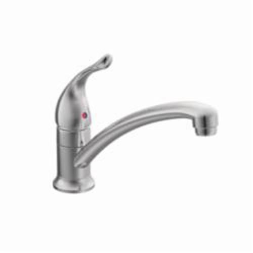 Moen® Kitchen Faucet, Chateau®, 1.5 gpm, Swivel Spout, 9-1/8 in Spout Reach, 8.94 in Spout Height, Lever, 1 Handle, No Side Spray(Y/N), 1 Faucet Hole, 1-1/4 in Faucet Hole, 3/8 in, Compression, Spray Pattern: Aerator Stream, 2 in Maximum Deck Thickness, Deck Mount, 1255 Duralast®/Ceramic Disc Valve/Cartridge, 8-5/8 in H, Metal, Polished Chrome, Domestic
