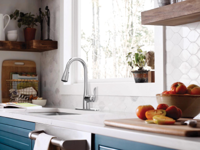 Understated style boasting versatile functionality meets its match in this kitchen faucet with pull-down sprayer. The Arbor Single-Handle Faucet features Reflex Technology which provides smooth operation, easy movement and the pull-out faucet’s sprayhead easy docks into place. Arbor is constructed with the highest standards and offers a Limited Lifetime Warranty against leaks, drips and more. Arbor's smooth profile is tailored to perfection. The slight flair of the handle and the curve of the spout make this a transitional look that works with a variety of decorating styles.