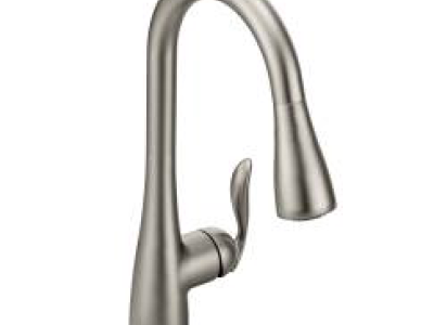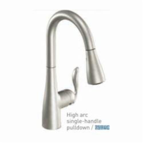 Moen® Kitchen Faucet, Arbor® Collection, 1.5 gpm Flow Rate, High Arc Pull-Down Spout, 7.87 in Spout Reach, 15-1/2 in Spout Height, 68 in Hose, Lever Handle, 1 Handles, 1/3 Faucet Holes, 1-1/2 in Faucet Hole, 3/8 in Connection, Compression Connection, Spray Pattern: Aerated Stream, Function: Traditional, 3 Spray Functions, 2-1/2 in Maximum Deck Thickness, Deck Mounting, 1255™ Duralast™ Ceramic Disc Cartridge, 15-1/2 in H, Metal, Classic Stainless Steel, Domestic