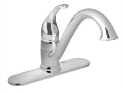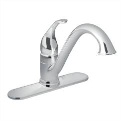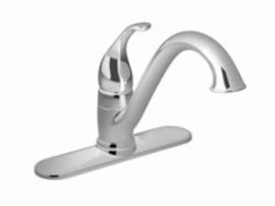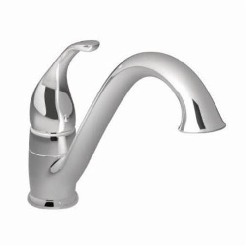 Moen® Kitchen Faucet, Camerist® Collection, 1.5 gpm Flow Rate, Low-Arc Spout, 9-1/4 in Spout Reach, 6-1/8 in Spout Height, Lever Handle, 1 Handles, Side Spray(Y/N): No, 1 Faucet Holes, 1-1/4 in Faucet Hole, 3/8 in Connection, Compression Connection, Spray Pattern: Aerator Stream, 1-1/8 in Maximum Deck Thickness, Deck Mounting, 1255™ Duralast™ Ceramic Disc Cartridge, 10.25 in W x 9.25 in D x 8.13 in H Dimensions, Metal, Polished Chrome, Domestic