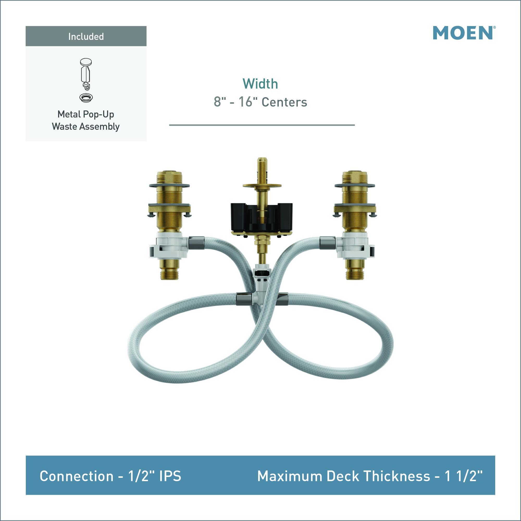 Moen® Widespread Lavatory Rough-In Valve, 1/2 in Inlet Connection, 1/2 in Outlet, Deck Mount, Brass Body, 9.25 in W x 13.62 in D x 2.75 in H, Domestic
