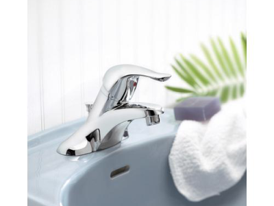 This contemporary-styled MOEN Chateau 4 in. Centerset Single Handle Low-Arc Bathroom Faucet will add a modern, refreshing look to your bathroom space. Featured in a polished chrome finish that offers a highly-reflective, mirror-like appearance for an upscale appearance, this faucet comes with a single, ADA- compliant lever handle for an easy use. The 4 in. DIY centerset configuration offers an easy install and a durable construction to deliver solid performance year after year. Metal drain assembly is included.