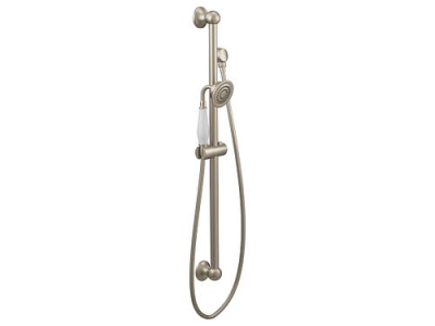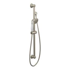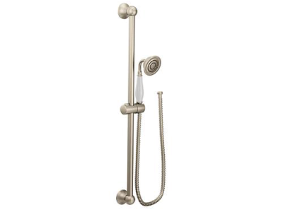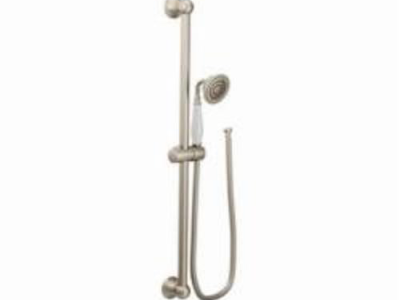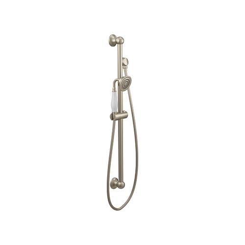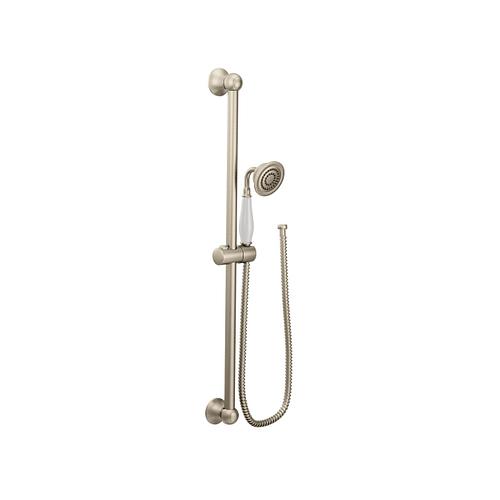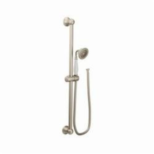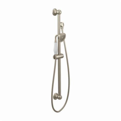 Moen®, S12107EPBN, Shower, Series: S12107EP, Weymouth™ Collection, 3 in Shower Head Diameter, 1-Function Shower Head Patterns, 2 gpm Flow Rate, 69 in Hose Length, Full Body Spray, 80 psi Pressure, Metal, Brushed Nickel, 5.88 in W x 33 in D x 3.25 in H Dimensions, With Slide Bar: Yes, Import