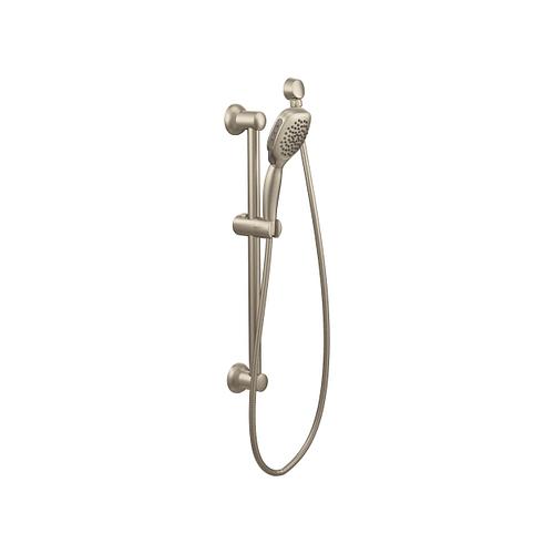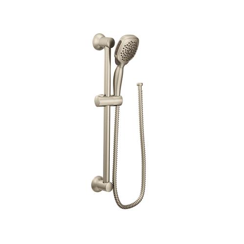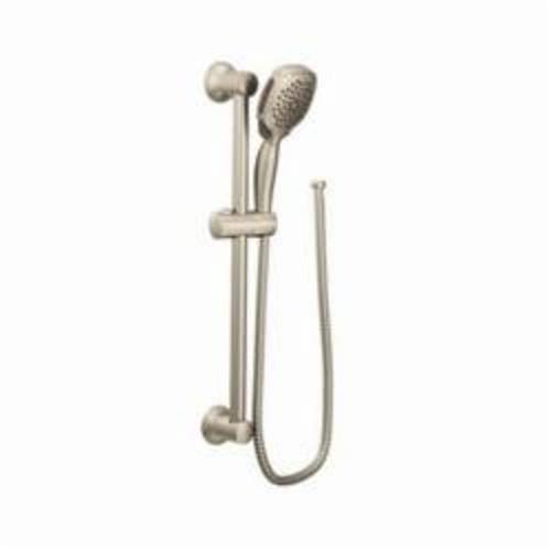 Moen®, S3870EPBN, Shower, Twist™ Collection, 3-3/4 in Shower Head Diameter, 4-Function Shower Head Patterns, 2 gpm Flow Rate, 69 in Hose Length, Drench/Immerse/Shine/Soothe Spray, 80 psi Pressure, Metal, Brushed Nickel, 5.88 in W x 33 in D x 3.25 in H Dimensions, With Slide Bar: Yes, Domestic
