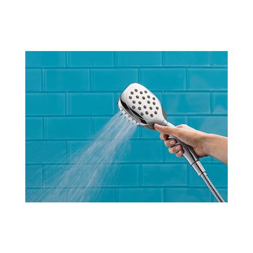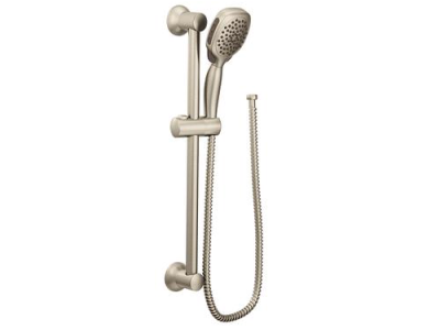 This brushed nickel handheld shower was built to last by MOEN. It will help you conserve water while still delivering strong performance. The attractive finish fits with any decor style.