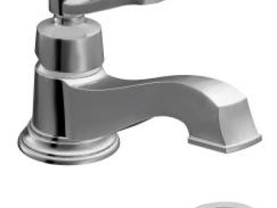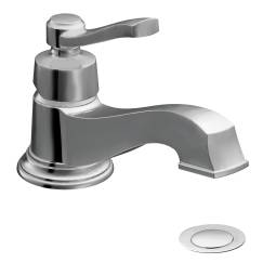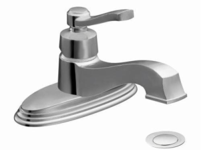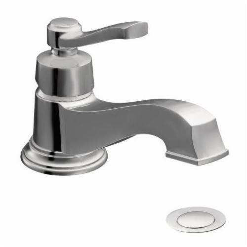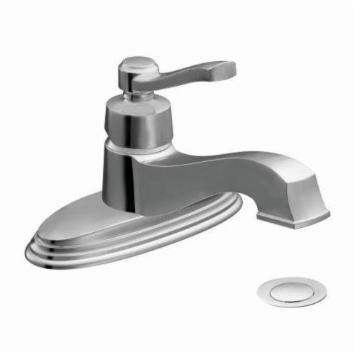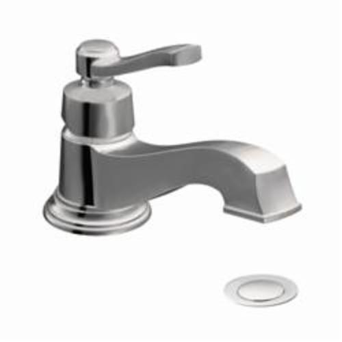 Moen® Bathroom Faucet, Rothbury™, 1.2 to 1.5 gpm, Fixed Spout, 5-5/16 in Spout Reach, 2-1/16 in Spout Height, Lever, 1 Handle, Pop-Up Drain, 1 Faucet Hole, 3/8 in, Compression, Function: Traditional, 3-1/8 in Maximum Deck Thickness, Deck Mount, 1255 Duralast® Ceramic Disc Valve/Cartridge, 9.25 in W x 13.62 in D x 5.75 in H, Metal, Polished Chrome, Domestic