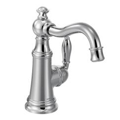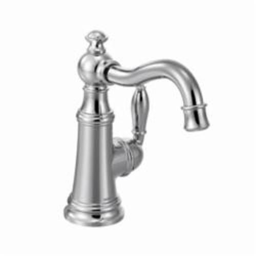 Moen® Bar Faucet, Weymouth™ Collection, 1.5 gpm Flow Rate, Fixed Spout, 6.13 in Spout Reach, 7.81 in Spout Height, Lever Handle, 1 Handles, 1 Faucet Holes, 1-1/8 in Faucet Hole, 3/8 in Connection, Compression Connection, Spray Pattern: Aerator Stream, 2-1/2 in Maximum Deck Thickness, Deck Mounting, 1255™ Duralast™/Ceramic Disc, 3.5 in W x 9.25 in D x 7.83 in H Dimensions, Metal, Polished Chrome, Domestic