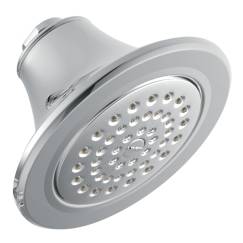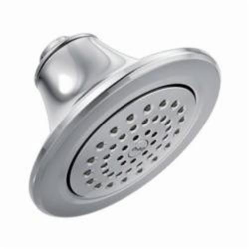 Moen® Shower Head, Standard, Icon™, 2.5 gpm Minimum Flow Rate, 1/2 in IPS, Round, Number of Sprays: 1, Spray Pattern: Full Body, Wall Mount, 80 psi, 5-7/8 in Head, 6 in Arm Length, 5.69 in Overall Width, 5.88 in Overall Height, Metal, Polished Chrome, Domestic
