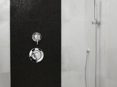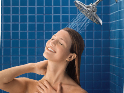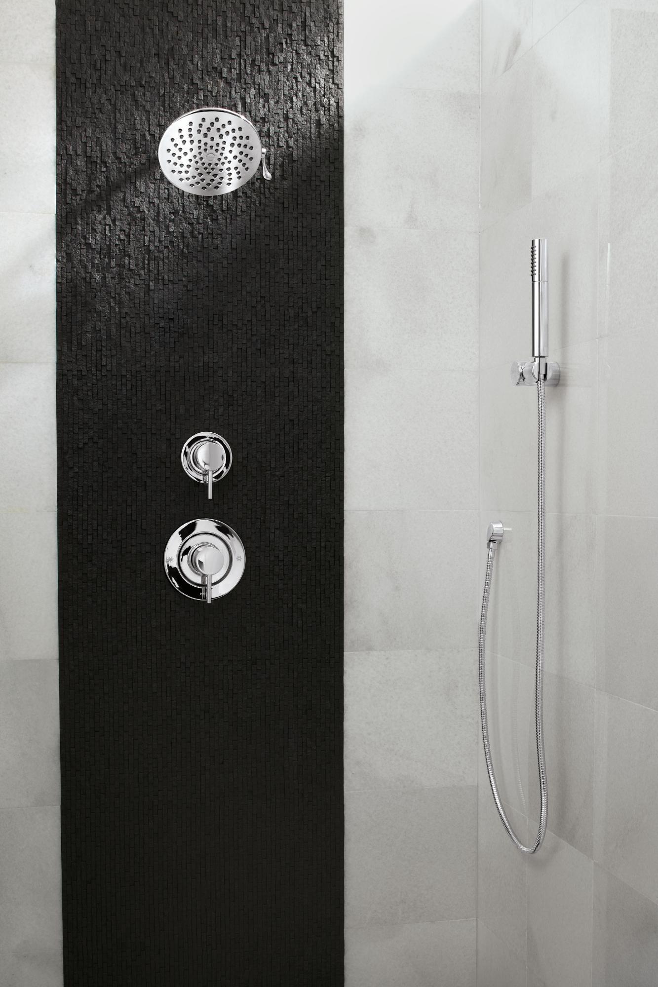 The rainshower experience that you can control is available in the Velocity showerhead with Immersion technology. A flip of a lever allows either a calming rain rinse function or a self-pressurized spray.
