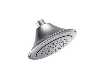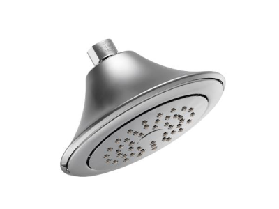 Moen® Shower Head, Rothbury™, 2.5 gpm Minimum Flow Rate, 1/2 in IPS, Round, Number of Sprays: 1, Spray Pattern: Full Body, Wall Mount, 80 psi, 6-1/2 x 4-1/2 in Head, 7 in Overall Width, 6 in Overall Height, Metal, Polished Chrome, Domestic