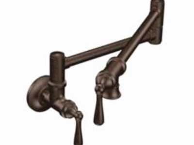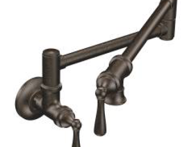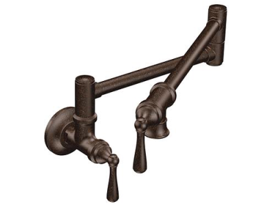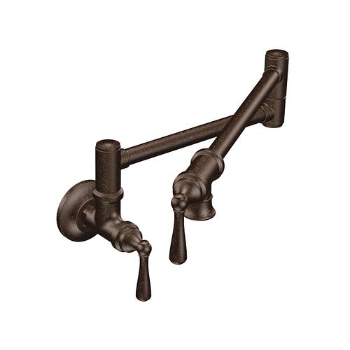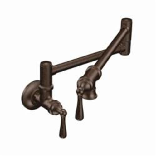 Moen®, S664ORB, Kitchen Faucet, Traditional Pot Filler, 5.5 gpm Flow Rate, 24 in Spout Reach, 3-3/8 in Spout Height, Lever Handle, 2 Handles, Side Spray(Y/N): No, 1 Faucet Holes, 1/2 in Connection, IPS Connection, Spray Pattern: Aerated Stream, Wall Mounting, 1224 Ceramic Disc Cartridge, 8-3/4 in H Dimensions, Metal, Oil Rubbed Bronze, Domestic
