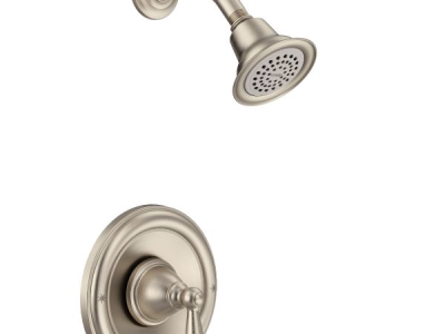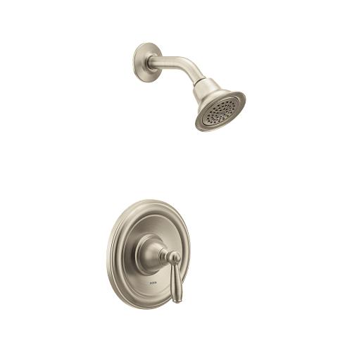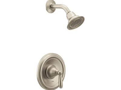 The MOEN Brantford Posi-Temp Shower Only Trim in Brushed Nickel is a single-handle trim kit for a shower-only valve. It features durable cast-metal construction and an attractive brushed nickel finish. This product requires MOEN valve(s) 2510, 2520, 2570, or 2590 for faucet to function.