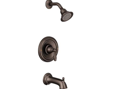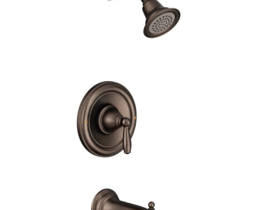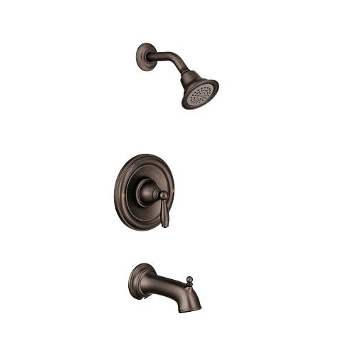 Tumbled dark and light accents adorn the surface of these Brantford oil-rubbed bronze tub and shower trim pieces from MOEN, giving your bathing space a dash of pizzazz. Meanwhile, intricate architectural styling lends an air of sophistication that transforms any new or renovated bathroom into a modern-day classic. A single, rounded lever on the faucet rotates 270 degrees to dial in your preferred heat intensity, held steady by a compatible PosiTemp pressure-balancing control valve. Part of the M-PACT common valve system, this set makes it simple to substitute the trim without tweaking the plumbing should your future style preference change. The warmth and beauty of the bronze finish bestows elegant, old-world charm, putting the perfect finishing touch on your powder-room buildout. This kit requires MOEN valve 2510, 2520, 2570 or 2590 (sold separately) to complete installation.