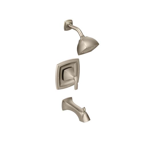 Moen®, T2693BN, Trim, Series: T2693, Voss™ Posi-Temp® Collection, 2.5 gpm Shower Flow Rate, 3 Faucet Holes, Slip-Fit Diverter Spout, 7-15/16 in Spout Reach, 1 Handles, Metal Lever Handle, 7-1/4 in W Trim, 1222 Pressure Balanced, Spray Pattern: Full Body, 1 Spray Functions, Wall Mounting, Brushed Nickel, 7-1/4 in W x 8 in D x 7-1/4 in H Dimensions, Domestic
