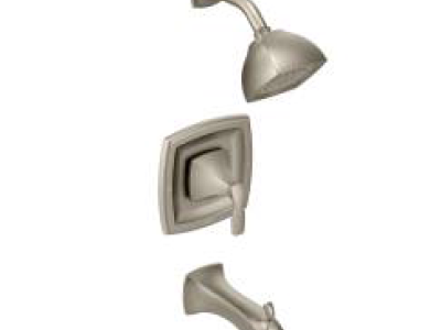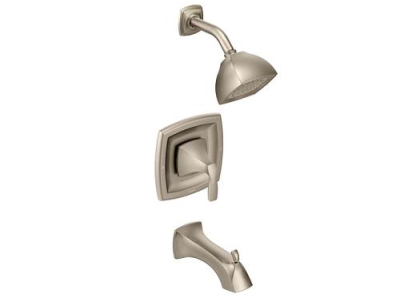Crisp edges and uncomplicated style features give the Voss collection an ageless, yet fashion-forward, presence. Each silhouette brings a confident transitional style to the bath. This brushed nickel Posi-Temp tub/shower was built to last by MOEN. Designed for use in your bath. This trim kit requires MOEN valve 2510, 2520, 2570, 2580, or 2590 to complete installation.