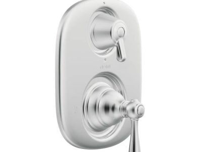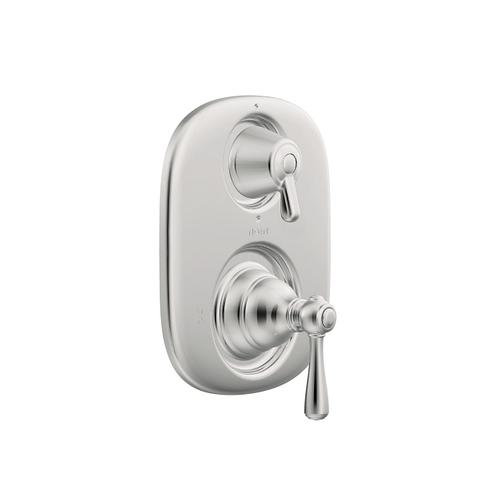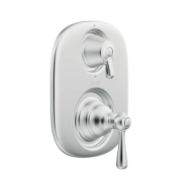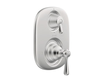 Moen®, T4111, Trim, Kingsley® Moentrol® Collection, Lever Handle, 7 in W x 8-3/8 in H Trim, 1/2 in IPS Valve Inlet Connection, 1/2 in C Valve Outlet Connection, Wall Mounting, For Use With: Model 3330 Transfer Valve, Metal, Chrome, 7 in W x 5 in D x 8.38 in H Dimensions, Domestic