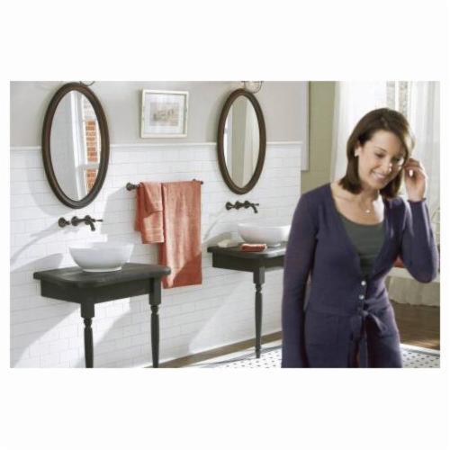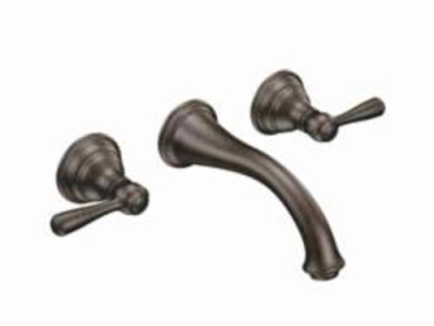 Moen® Bathroom Faucet, Kingsley® Collection, 1.5 gpm Flow Rate, 8 in Center Distance, Fixed Spout, 7 in Spout Reach, 15 in Spout Height, Lever Handle, 2 Handles, 3 Faucet Holes, 1/2 in Connection, C Connection, Function: Traditional, Wall Mounting, 1224 Ceramic Disc Cartridge, 9.25 in W x 13.625 in D x 3.34 in H Dimensions, Metal, Oil Rubbed Bronze, Domestic