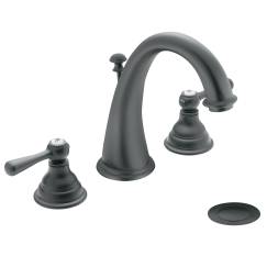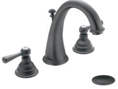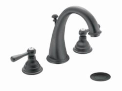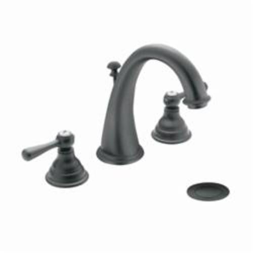 Moen® Widespread Bathroom Faucet, Kingsley® Collection, 1.2 to 1.5 gpm Flow Rate, 8 to 16 in Center Distance, Fixed Spout, 5-1/8 in Spout Reach, 4-7/16 in Spout Height, Lever Handle, 2 Handles, Pop-Up Drain, 3 Faucet Holes, 1/2 in Connection, IPS Connection, 1-1/4 in Maximum Deck Thickness, Deck Mounting, 1224 Ceramic Disc Cartridge, 8.26 in W x 6.5 in D x 7 in H Dimensions, Metal, Wrought Iron, Domestic