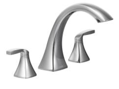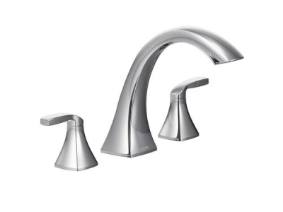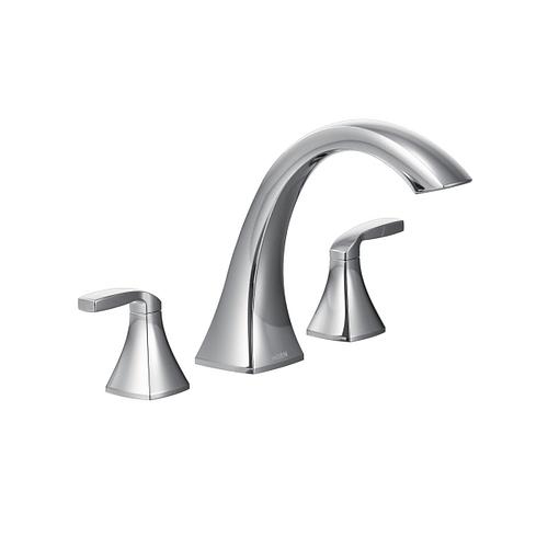 The Voss High-Arc Roman Tub Faucet Trim Kit from MOEN produces the transitional look you've envisioned for your bath area. Minimalist design produces an understated elegance in this two-handle deck-mount fixture, which features crisply honed edges and a gleaming chrome finish to make a chic style statement. The gracefully curved spout rises 8-1/2 high and extends 8-1/4 over your bathtub, dispensing up to 13 GPM with a compatible MOEN valve for quick fill-ups. Part of the M-PACT common valve system, this set makes it simple to substitute the trim without tweaking the plumbing should your future style preference change. This kit requires MOEN valve 4792, 4793, 4794, 4796, 4797 or 4798 (sold separately) to complete installation.
