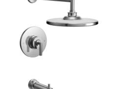 Moen® Tub and Shower Trim, Series: TS22003, Arris™, 2.5 gpm Shower Flow Rate, 3 Faucet Holes, Slip-Fit Diverter Spout, 7-1/8 in Spout Reach, 1 Handles, Metal Lever Handle, 7 in Dia Trim, 1222 Pressure Balanced, Spray Pattern: Rain, 1 Spray Functions, Wall Mounting, Metal, Polished Chrome, 10 in W x 18.88 in D x 7 in H, Import
