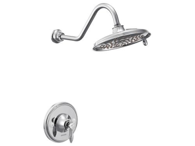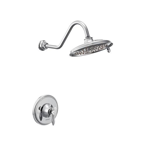 Moen®, TS32102, Trim, Series: TS32102, Weymouth™ Posi-Temp® Collection, 2.5 gpm Shower Flow Rate, 2 Faucet Holes, 7-1/2 in Spout Reach, 1 Handles, Lever Handle, 7 in Dia Trim, 1222 Pressure Balanced, Spray Pattern: Full, 2 Spray Functions, Wall Mounting, Metal, Chrome, 9.19 in W x 17.5 in D x 7 in H Dimensions, Domestic, Commercial Commercial/Residential