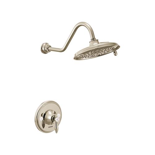 Moen®, TS32102NL, Trim, Series: TS32102, Weymouth™ Posi-Temp® Collection, 2.5 gpm Shower Flow Rate, 2 Faucet Holes, 7-1/2 in Spout Reach, 1 Handles, Lever Handle, 7 in Dia Trim, 1222 Pressure Balanced, Spray Pattern: Full, 2 Spray Functions, Wall Mounting, Metal, Polished Nickel, 9.19 in W x 17.5 in D x 7 in H Dimensions, Import