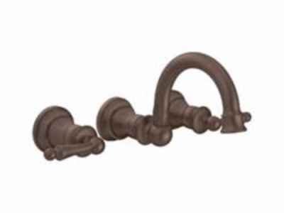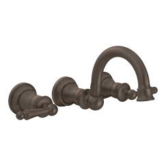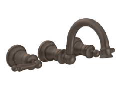Moen® Bathroom Faucet, Weymouth™ Collection, 1.5 gpm Flow Rate, 8 in Center Distance, Fixed Spout, 8.16 in Spout Height, Lever Handle, 2 Handles, 3 Faucet Holes, 1/2 in Connection, C Connection, Function: Traditional, Wall Mounting, 1224 Ceramic Disc Cartridge, 9 in W Dimensions, Metal, Oil Rubbed Bronze, Import