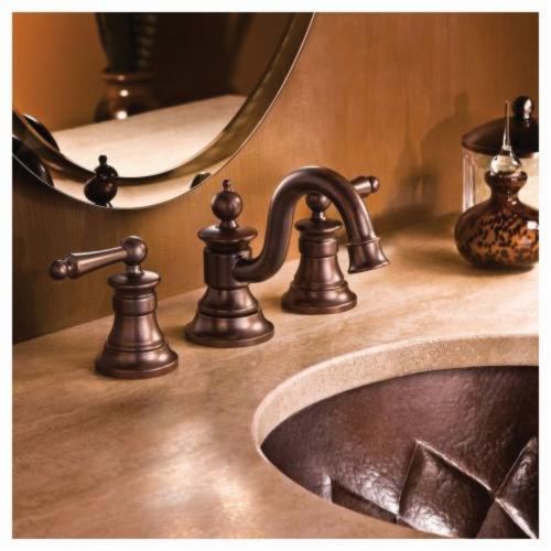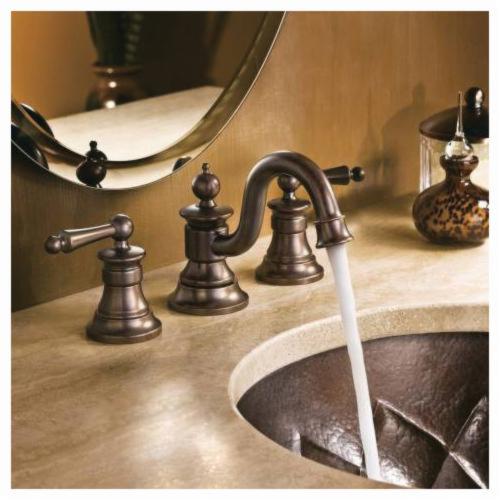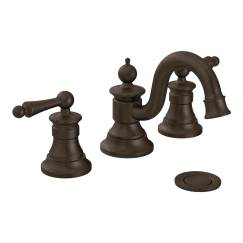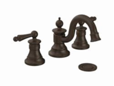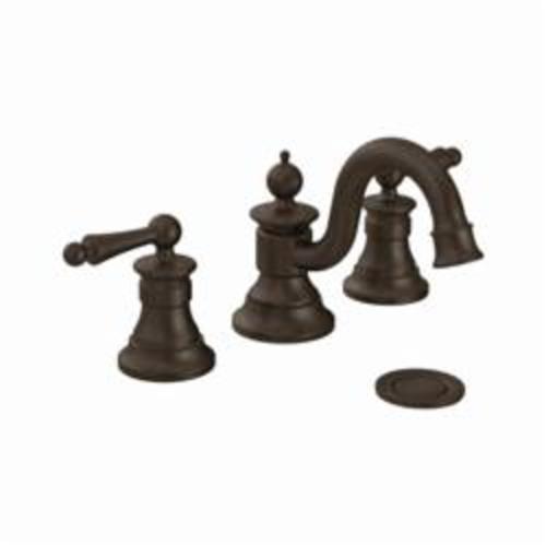 Moen® Widespread Bathroom Faucet, Weymouth™ Collection, 1.2 to 1.5 gpm Flow Rate, 8 to 16 in Center Distance, Rotating Spout, 5-3/4 in Spout Reach, 3-7/32 in Spout Height, Lever Handle, 2 Handles, Pop-Up Drain, 3 Faucet Holes, 1/2 in Connection, IPS Connection, 1-1/4 in Maximum Deck Thickness, Deck Mounting, 1224 Ceramic Disc Cartridge, 13.88 in W x 5.75 in D x 5.78 in H Dimensions, Metal, Oil Rubbed Bronze, Domestic