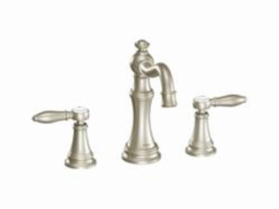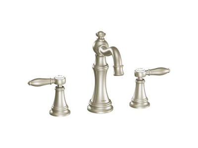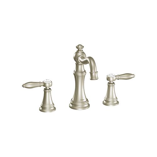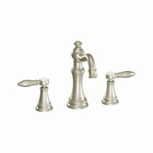 Moen®, TS42108BN, Bathroom Faucet, Series: TS42108, Weymouth™ Collection, 1.2 to 1.5 gpm Flow Rate, 8 to 16 in Center Distance, Fixed Spout, 5-3/4 in Spout Reach, 5-1/4 in Spout Height, Lever Handle, 2 Handles, Pop-Up Drain, 3 Faucet Holes, 1/2 in Connection, IPS Connection, 1-1/4 in Maximum Deck Thickness, Deck Mounting, 1224 Ceramic Disc Cartridge, 9.25 in W x 13.63 in D x 7.5 in H Dimensions, Metal, Brushed Nickel, Domestic