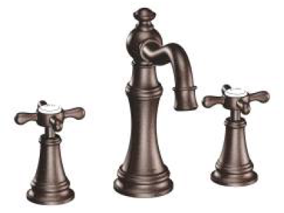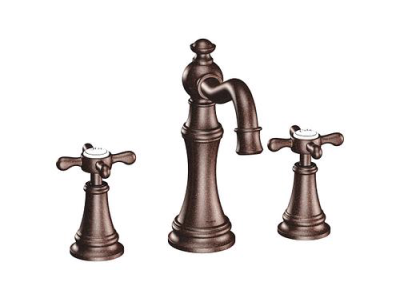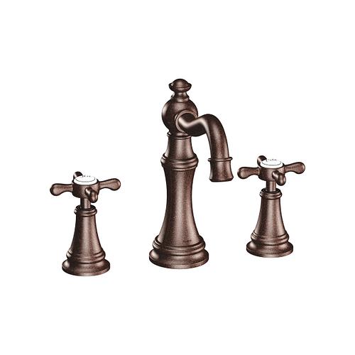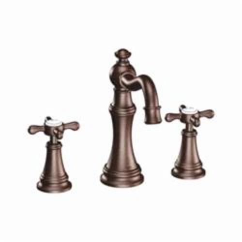 Moen®, TS42114ORB, Bathroom Faucet, Series: TS42114, Weymouth™ Collection, 1.2 to 1.5 gpm Flow Rate, 8 to 16 in Center Distance, Fixed Spout, 5-3/4 in Spout Reach, 5-1/4 in Spout Height, Cross Handle, 2 Handles, Pop-Up Drain, 3 Faucet Holes, 1/2 in Connection, IPS Connection, 1-1/4 in Maximum Deck Thickness, Deck Mounting, 1224 Ceramic Disc Cartridge, 9.25 in W x 13.63 in D x 7.5 in H Dimensions, Metal, Oil Rubbed Bronze, Domestic